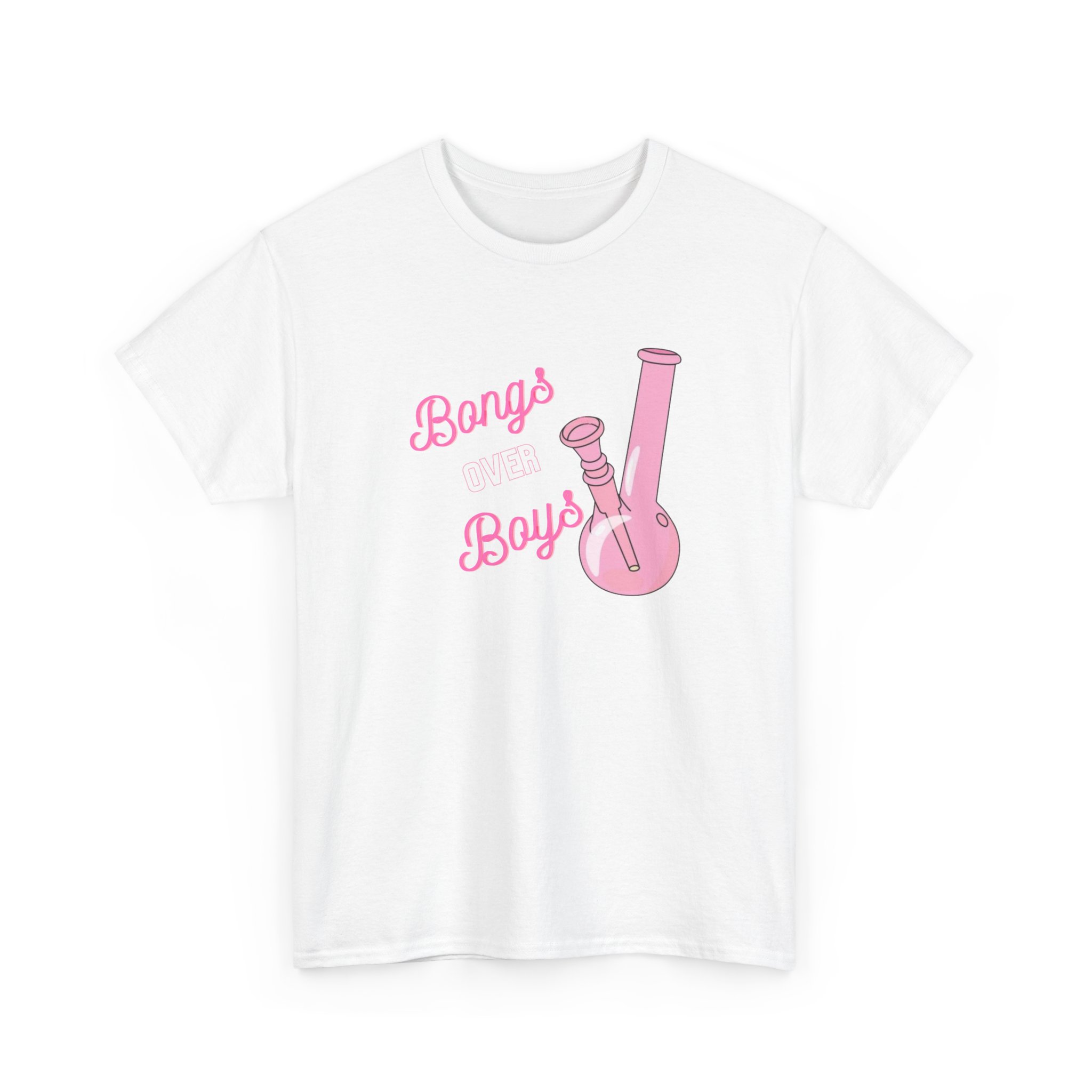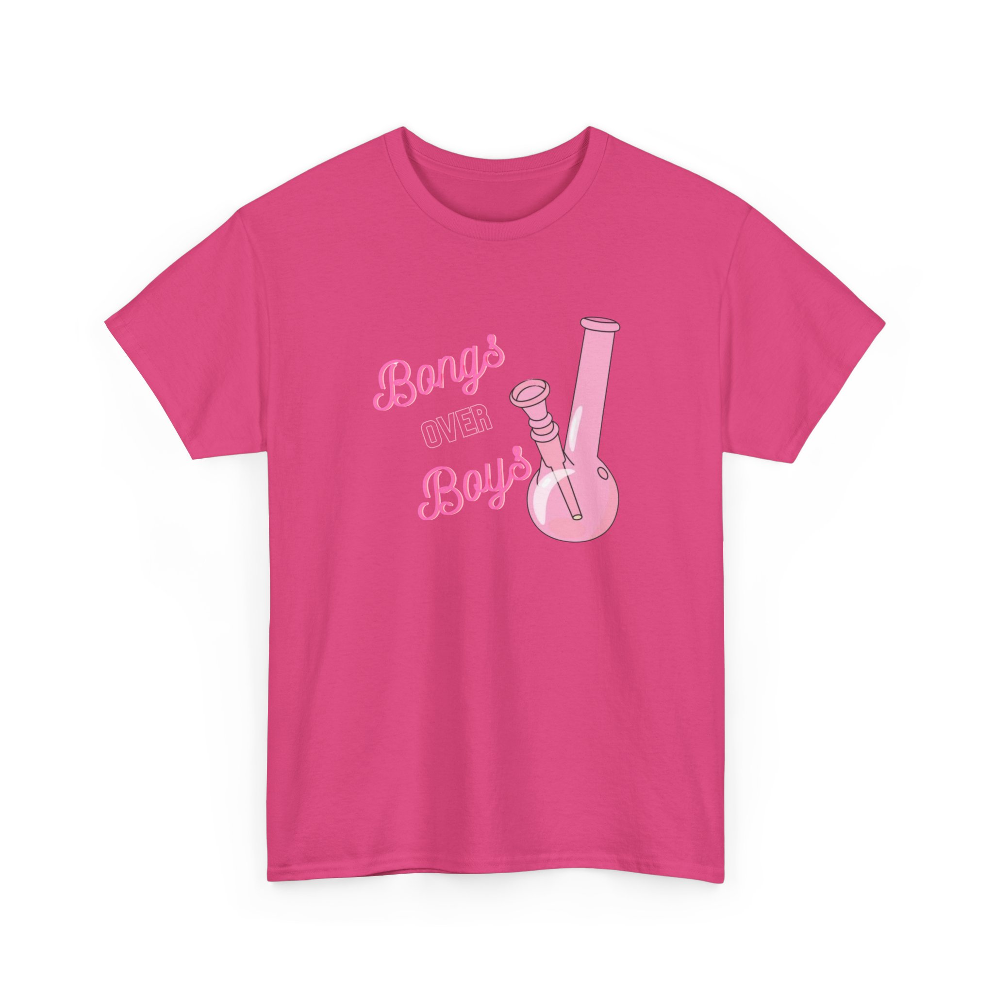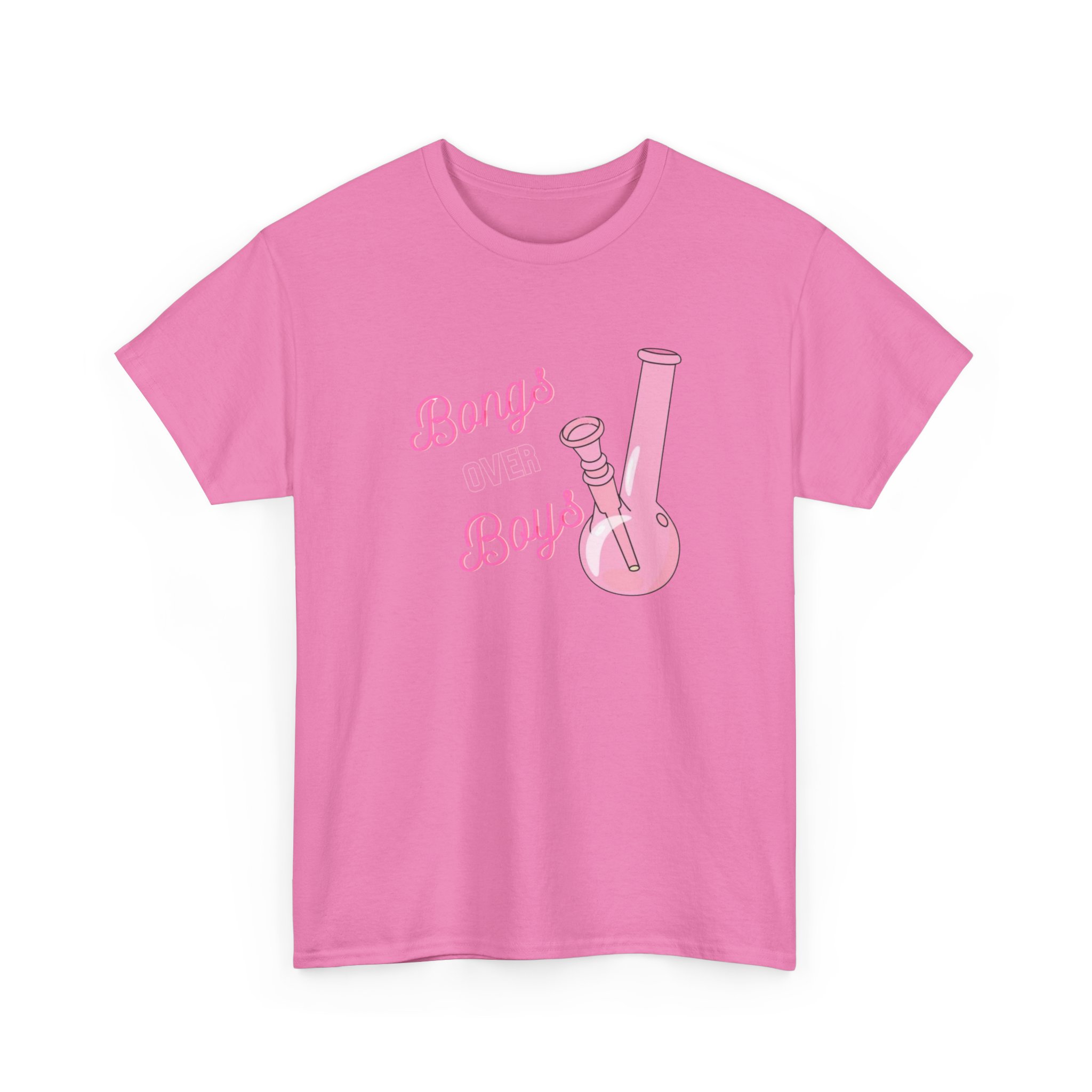 This Bongs over Boys Tee brings fun to casual style. It features a bold pink bong graphic that stands out. The design speaks to cannabis lovers and stoners alike. Made from soft cotton, this shirt feels great all day. It is breathable and lightweight. You can wear it in warm weather or layer it with a hoodie.