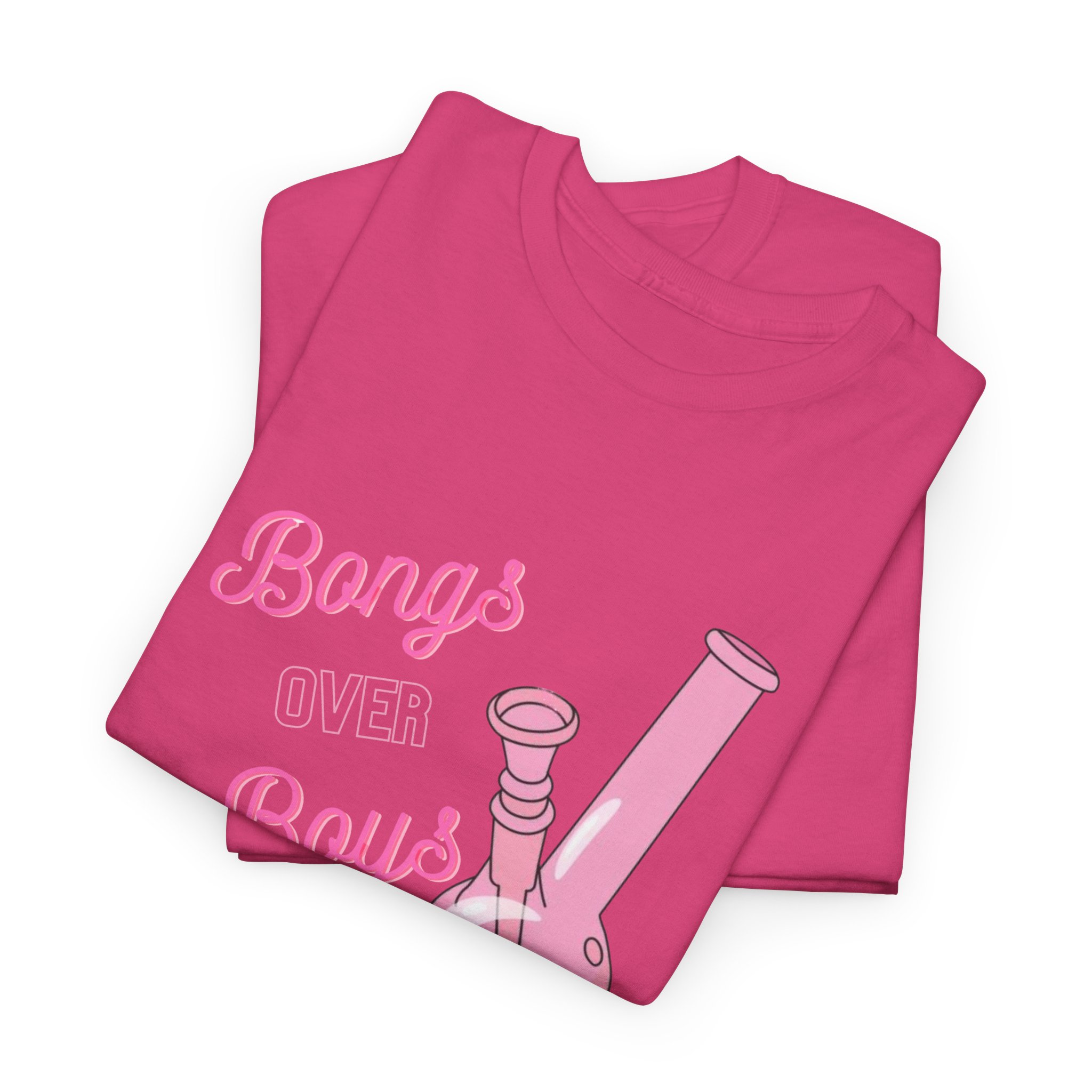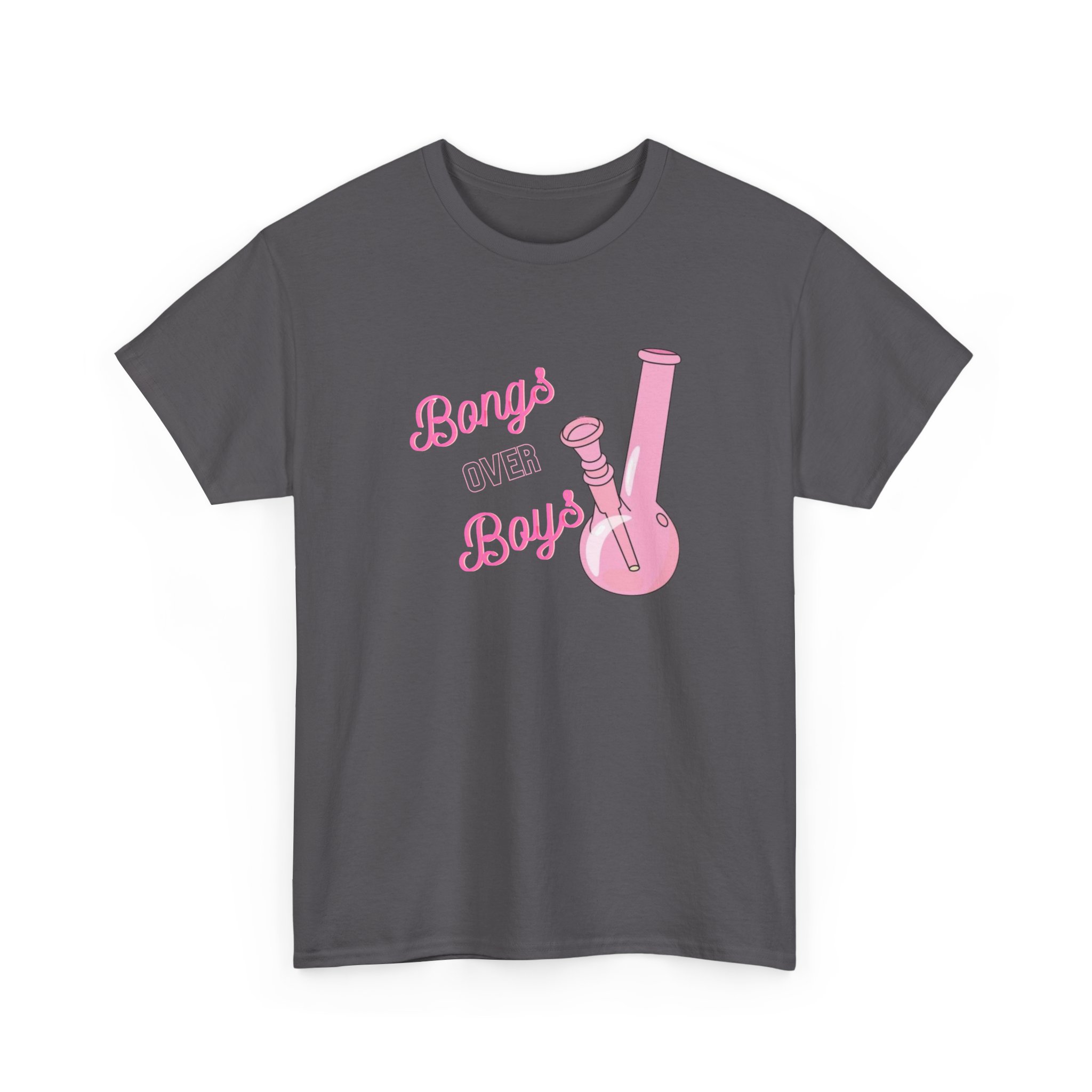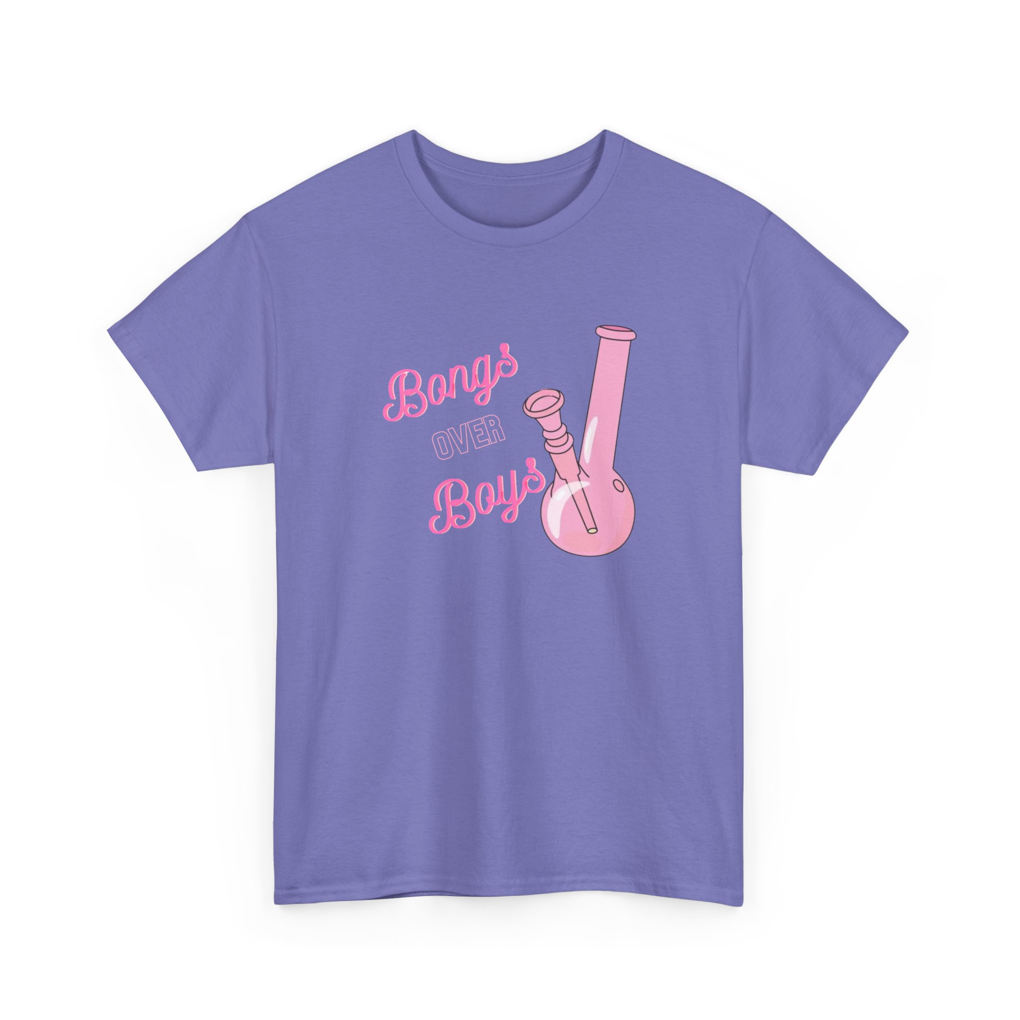 This Bongs over Boys Tee brings fun to casual style. It features a bold pink bong graphic that stands out. The design speaks to cannabis lovers and stoners alike. Made from soft cotton, this shirt feels great all day. It is breathable and lightweight. You can wear it in warm weather or layer it with a hoodie.