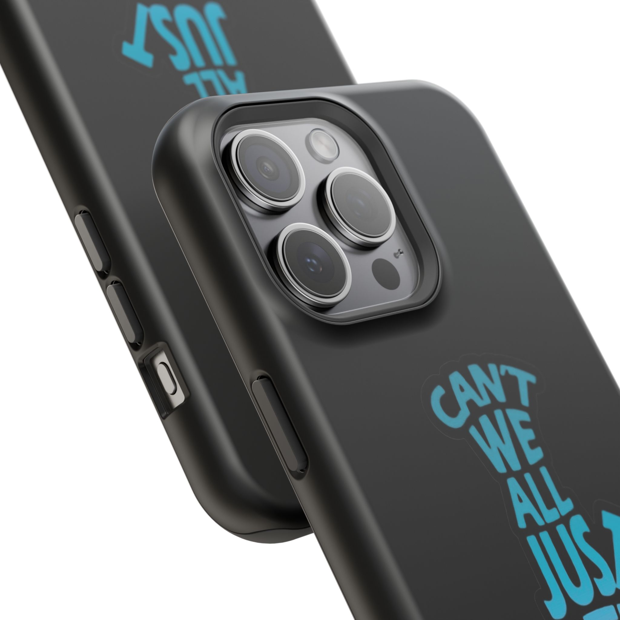 This Can’t We All Just Get a Bong phone case brings vibrant style to your device. It features a bold gradient cannabis graphic with the playful phrase “Can’t We All Just Get a Bong.” The colorful gradient makes the design pop. Also, the weed culture theme feels fun and expressive for daily wear.