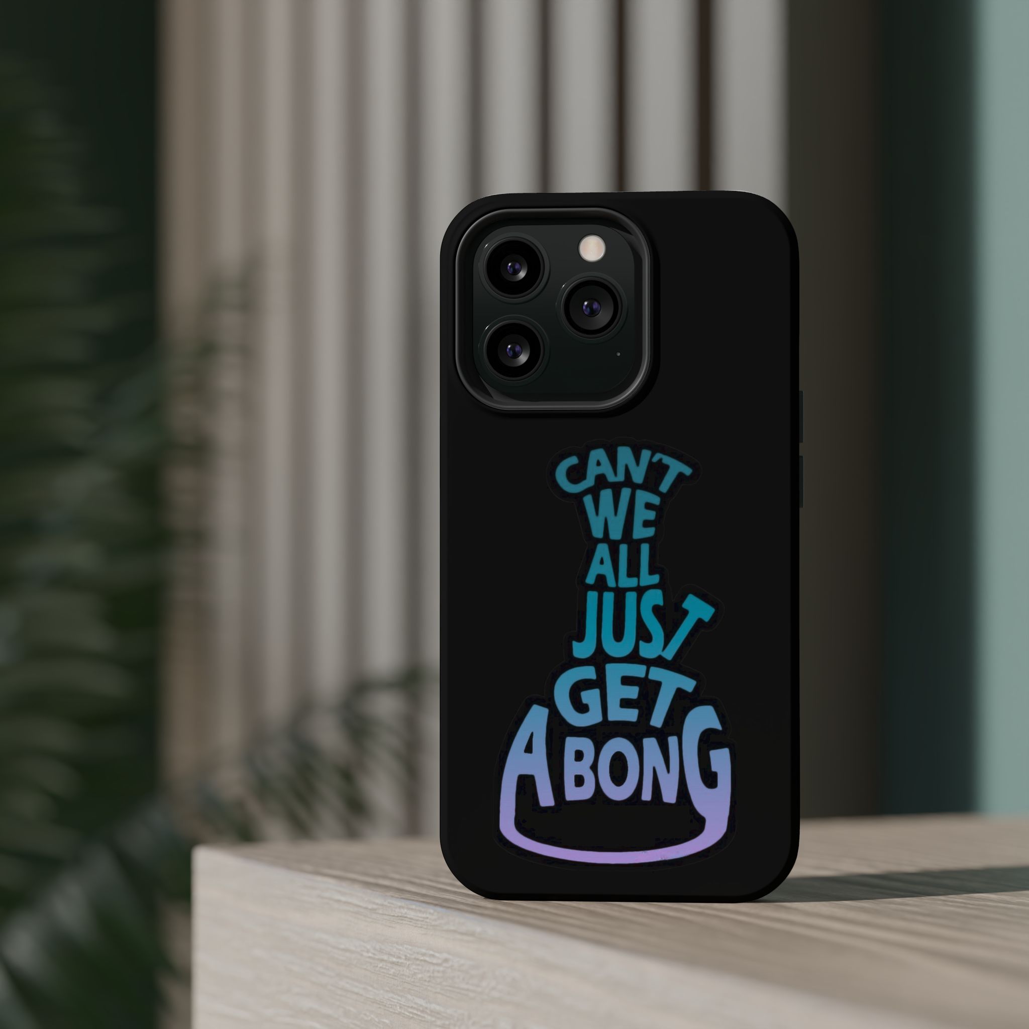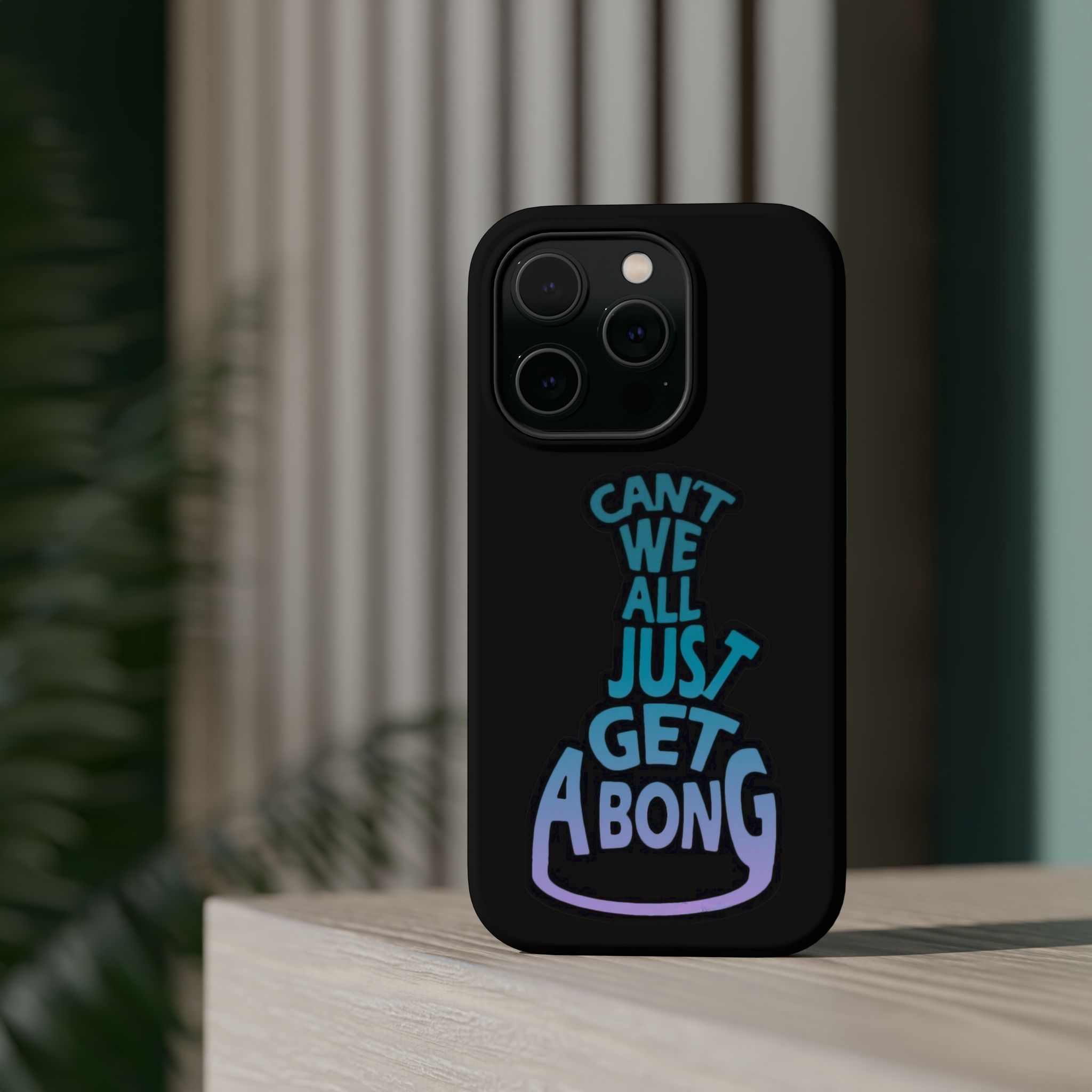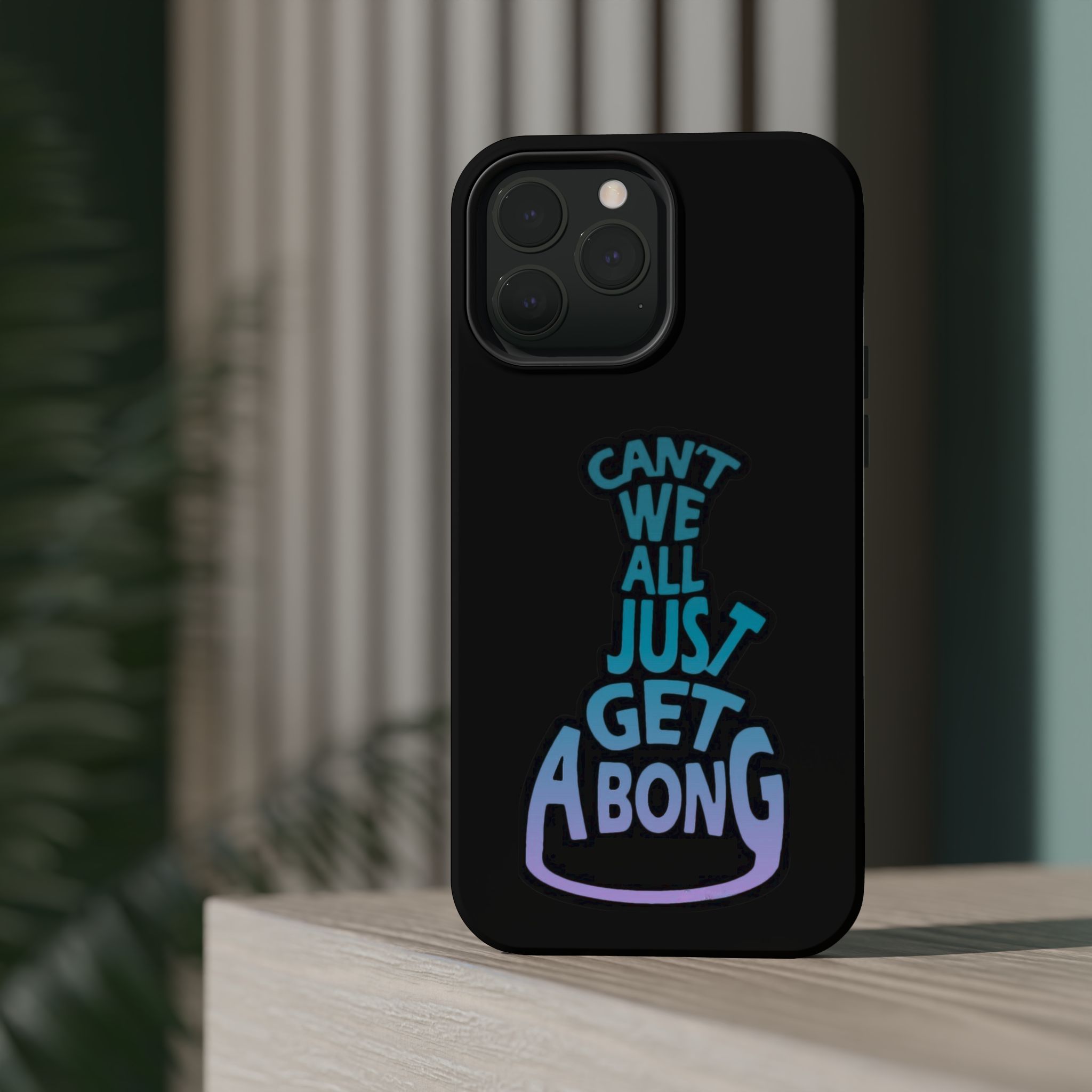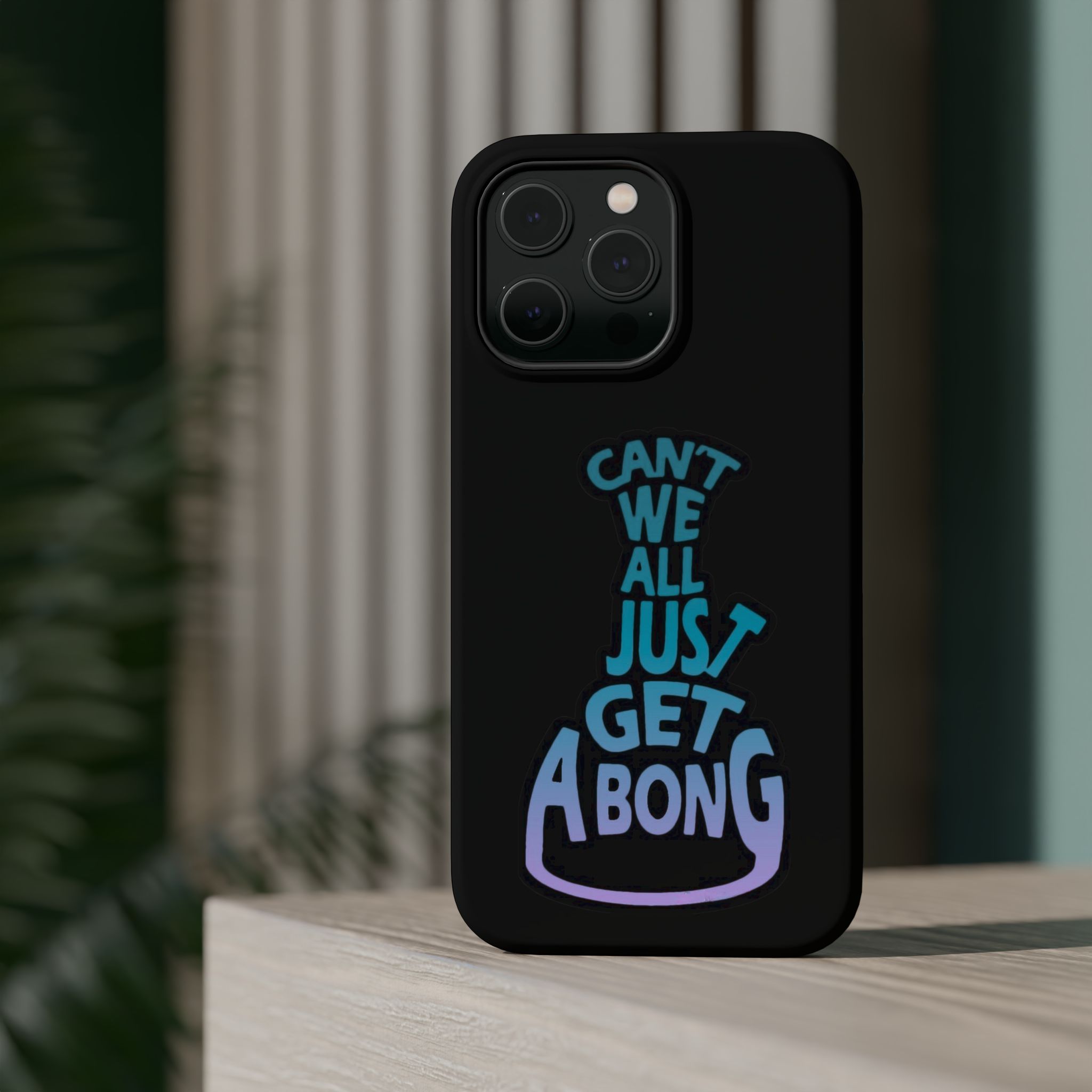 Finally, protect your phone with flair. Add the Can’t We All Just Get a Bong phone case today.