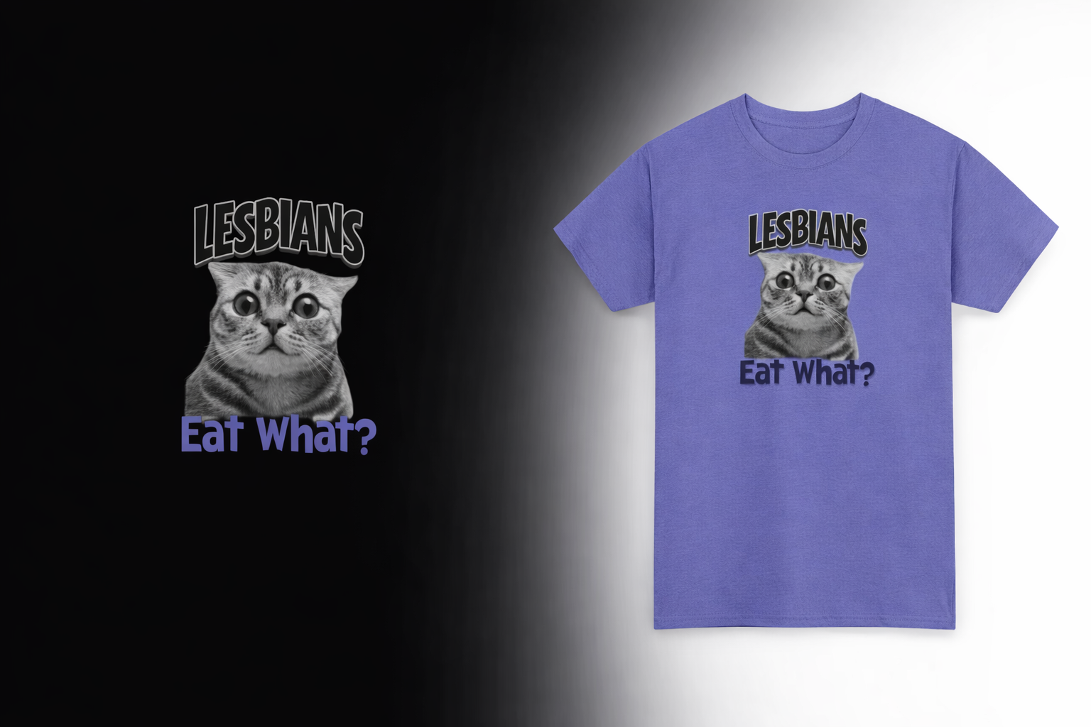 Lesbians Eat What Cat Graphic Tee – Funny LGBTQ Pride T-Shirt | Queer Streetwear
