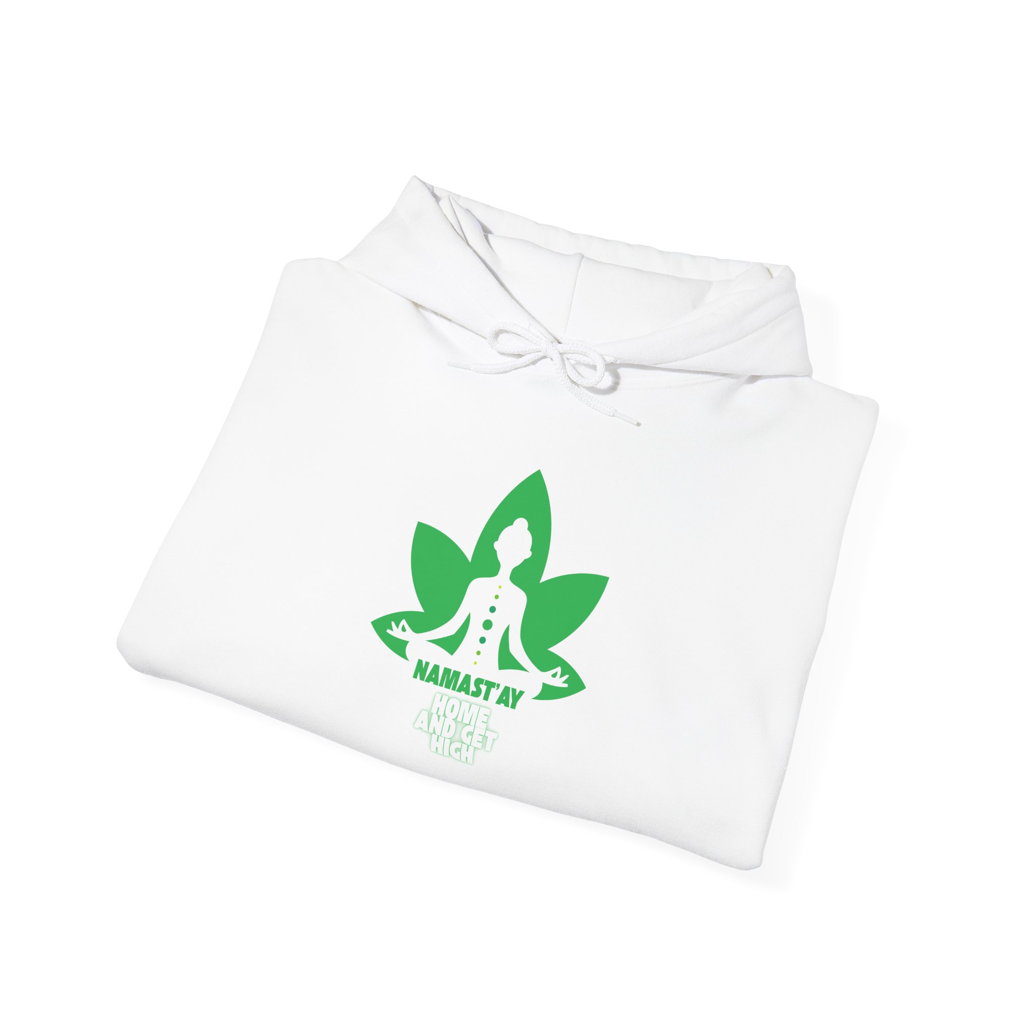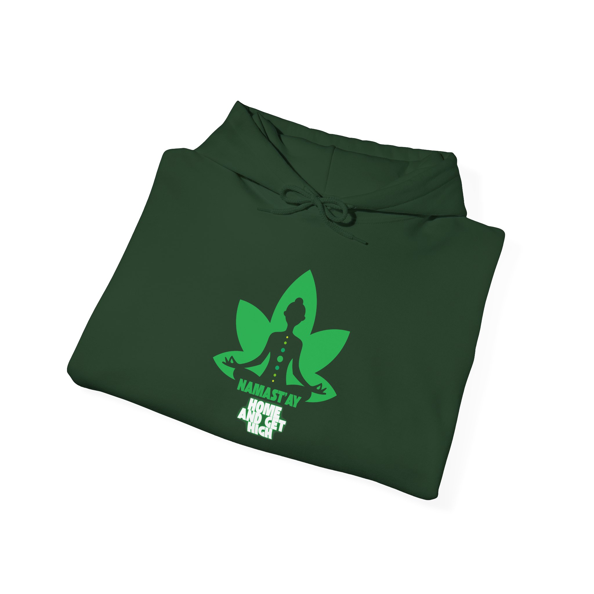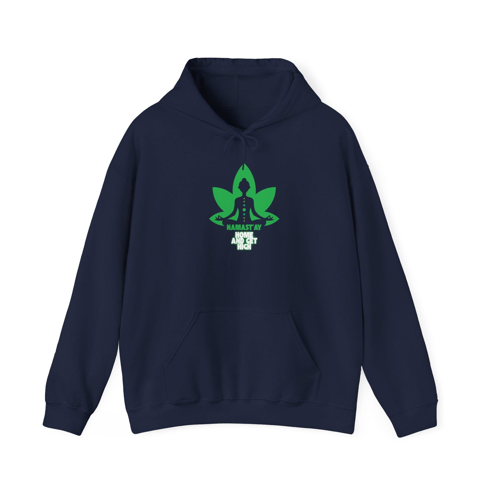 Stay cozy, stylish, and effortlessly relaxed with our Namastay Home and Get High Hoodie. Designed for yoga lovers and chill lifestyle enthusiasts alike, this eye-catching pullover features a bold green lotus flower with a meditating silhouette. As a result, it perfectly blends mindfulness with playful humor.