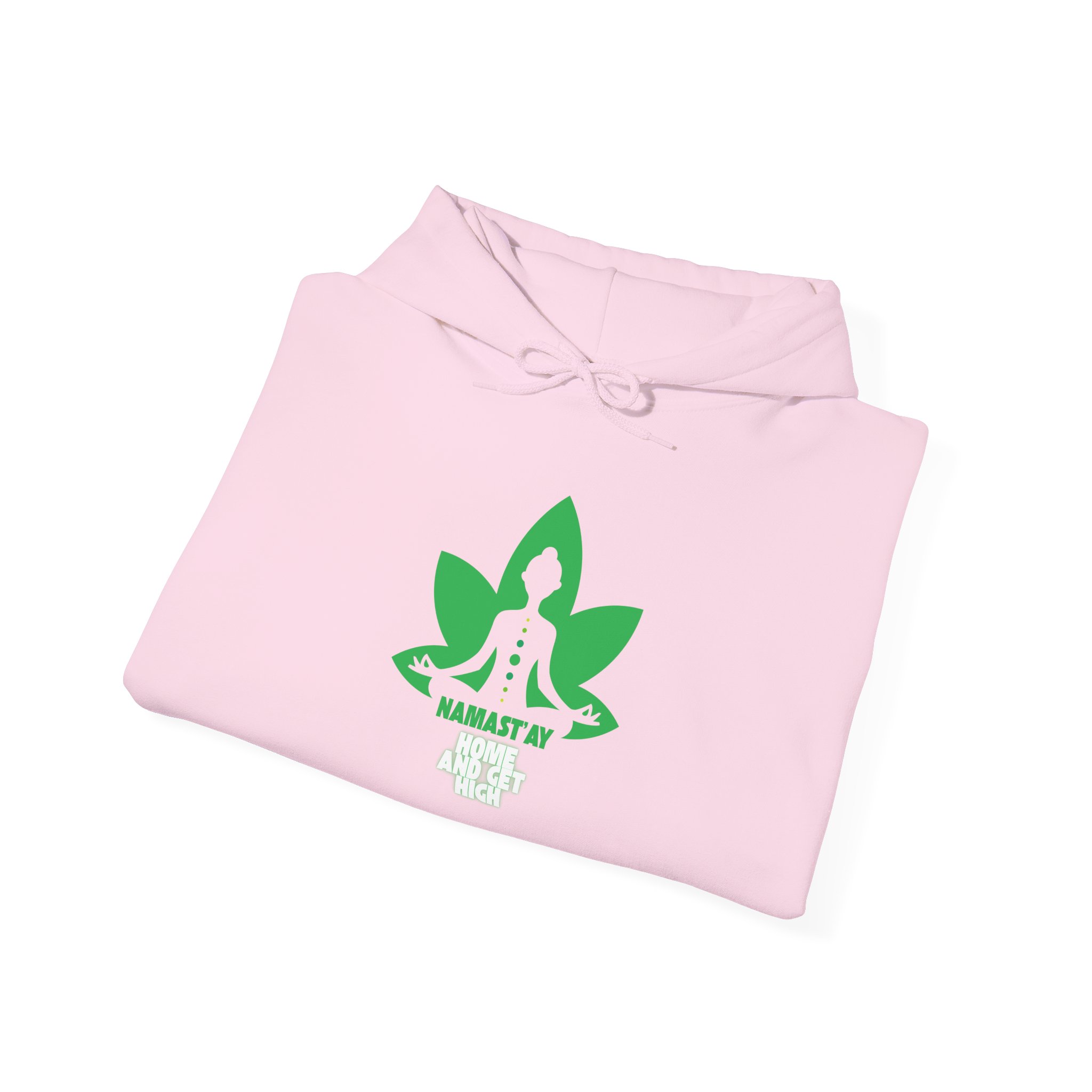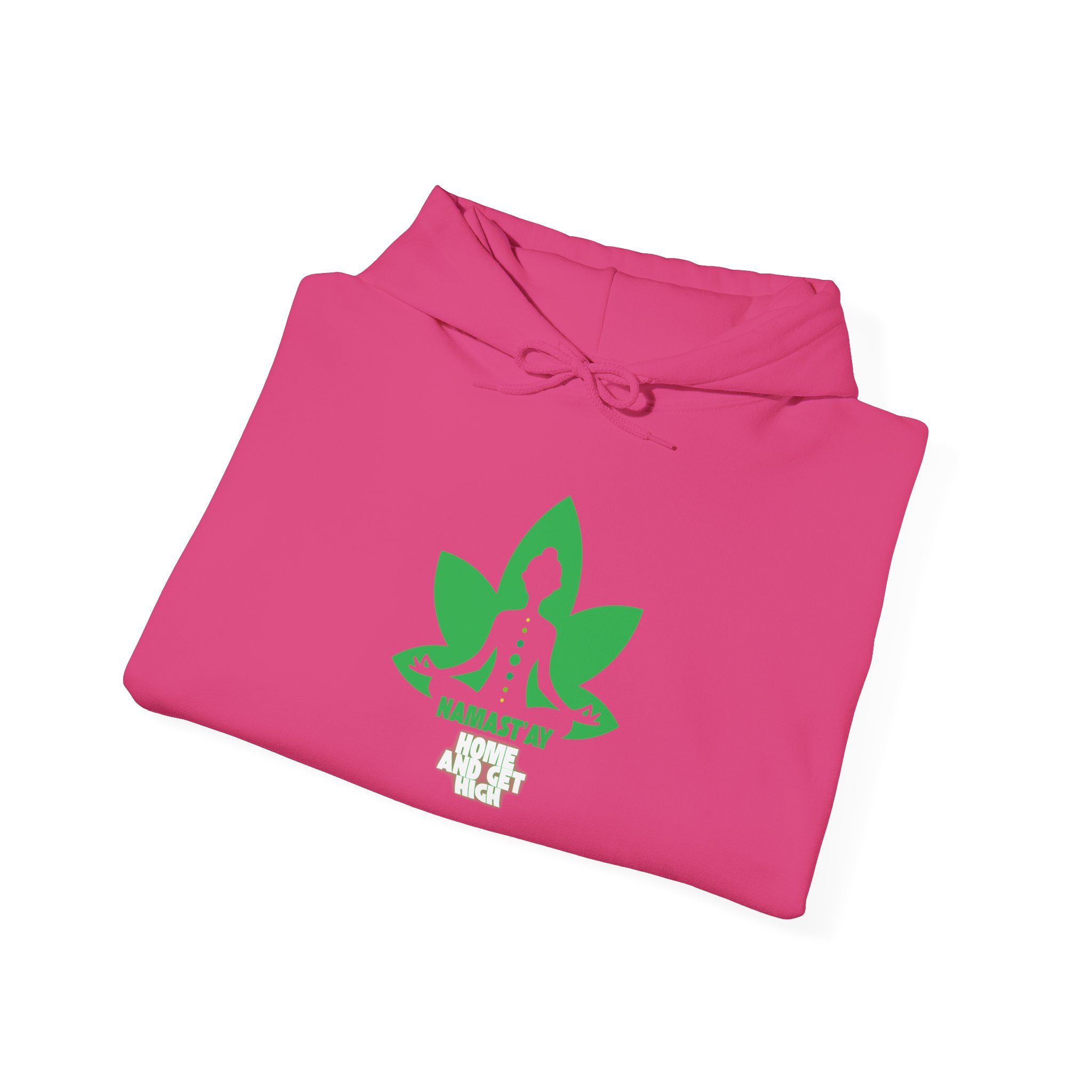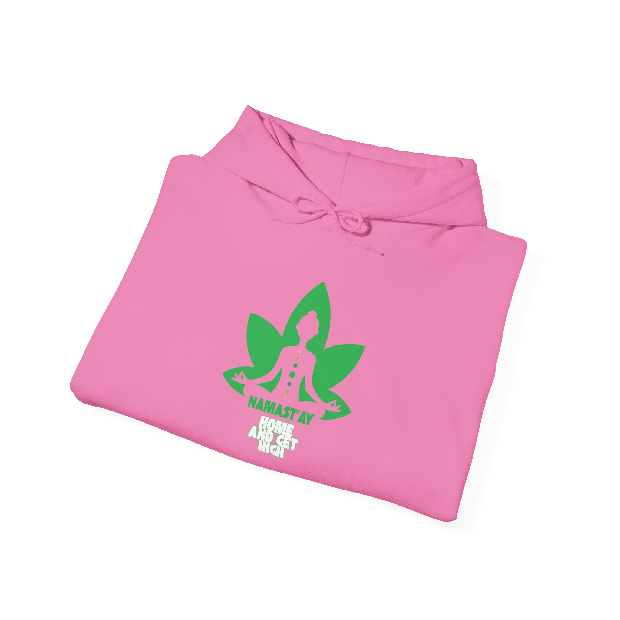 Stay cozy, stylish, and effortlessly relaxed with our Namastay Home and Get High Hoodie. Designed for yoga lovers and chill lifestyle enthusiasts alike, this eye-catching pullover features a bold green lotus flower with a meditating silhouette. As a result, it perfectly blends mindfulness with playful humor.